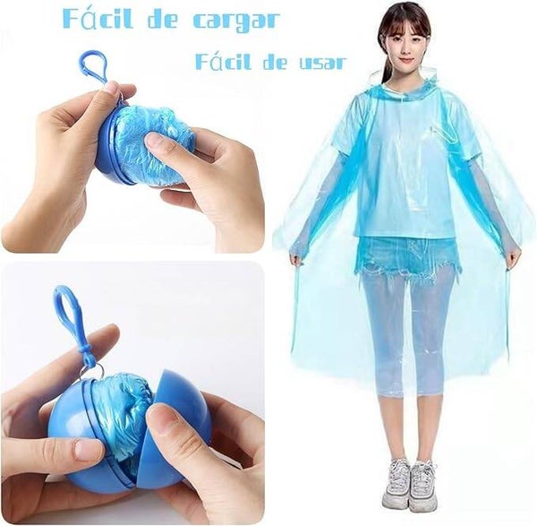Impermeables Desechables en Bolita (6 pzas) Portátiles y Prácticos – Llavero Poncho de Emergencia